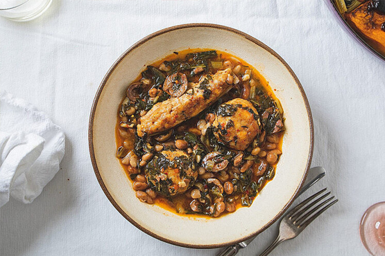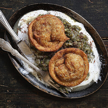 כיסונים ממולאים בחציל וגבינה על מנגולד ויוגורט